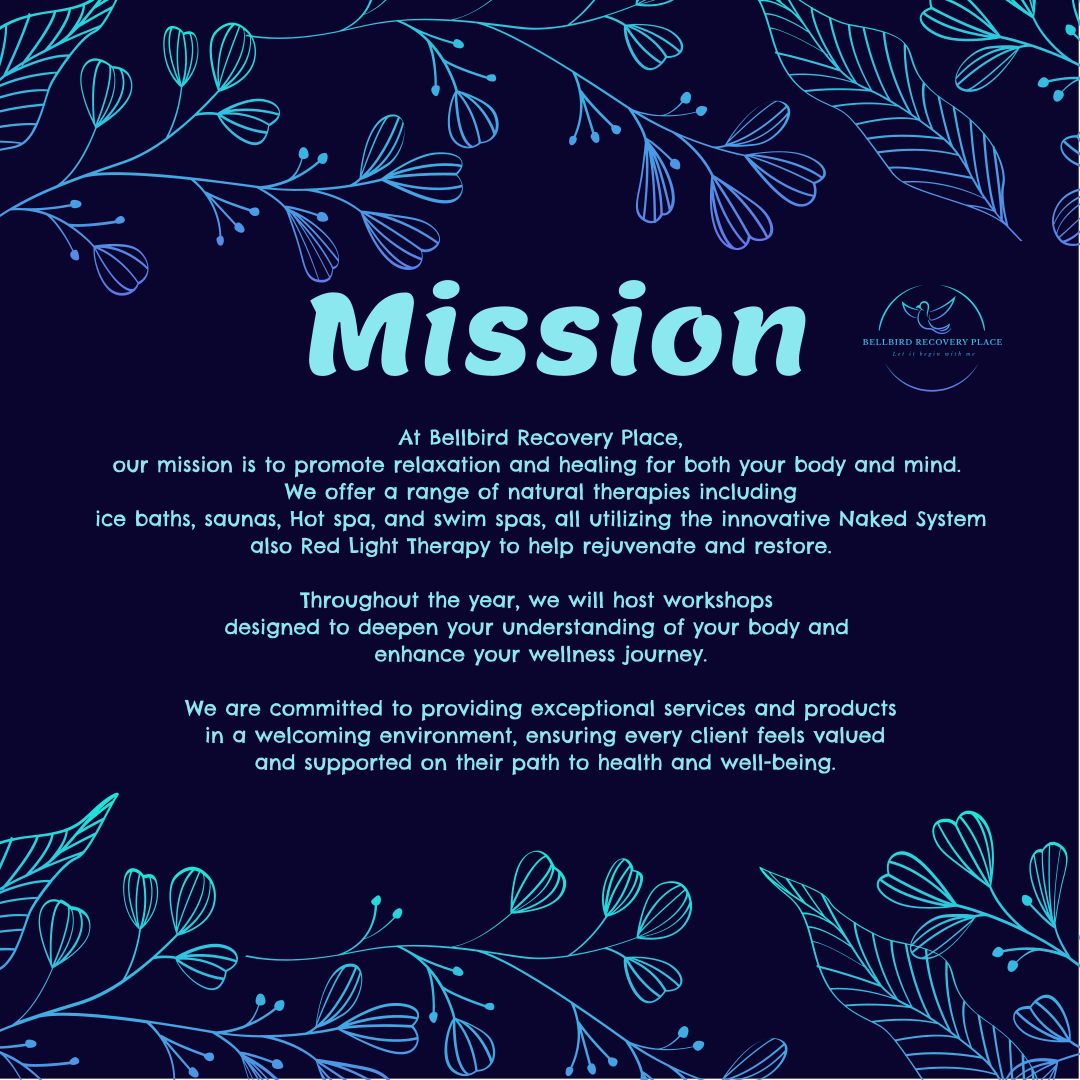 Step into a sanctuary designed to help you recover, recharge, and restore balance to your body and mind. At Bellbird Recovery Place, we combine the latest in wellness technology with time-tested therapeutic practices to provide you with a holistic recovery experience.